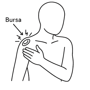 Inflammation of the bursae (fluid-filled sacs) in the shoulder can result in localized pain, tenderness, and swelling.